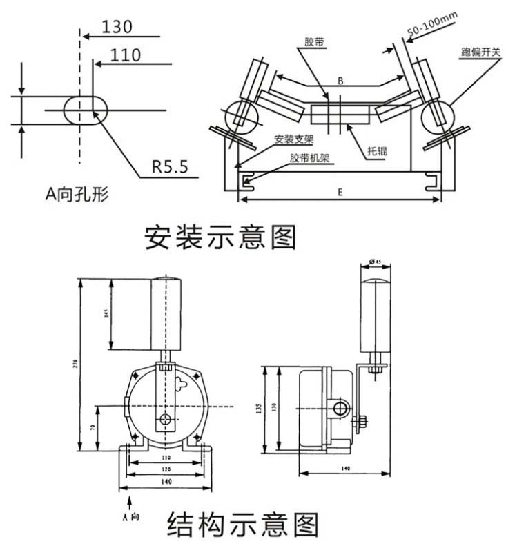 4.跑偏開關(guān)應(yīng)通過安裝支架與輸送機中間架連接,開關(guān)支架應(yīng)在輸送機安裝完成后與輸送機機架焊接,跑偏開關(guān)與跑偏開關(guān)支架用螺栓固定。
