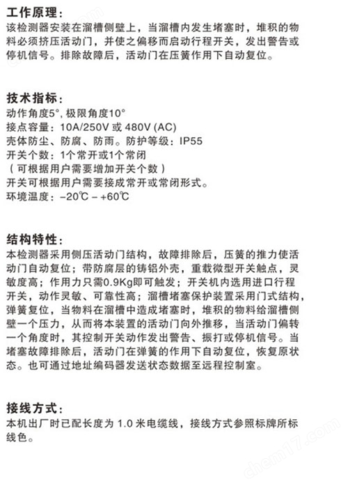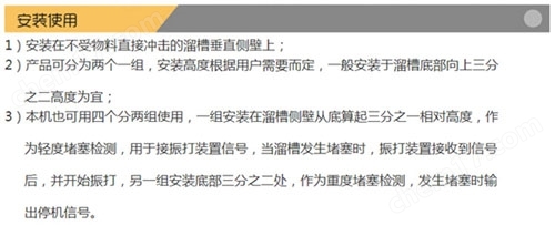溜槽堵塞開(kāi)關(guān)裝置使用條件: